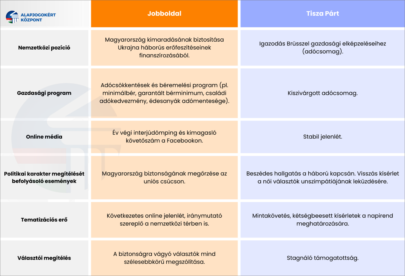 A választásokhoz közeledve az emberek egyre jobban érzékelik, hogy annak eredményén a biztonságuk múlik, így egyre aktívabbá válik a nemzeti oldal megbízhatóságot előtérbe helyező tábora, míg Magyar Péter hosszú ideje képtelen bővíteni szimpatizánsainak körét. Ebből fakadóan az év utolsó hónapjában sem volt képes változtatni alárendelt pozícióján a Tisza Párt, a jobboldal viszont még szilárdabbá tette vezető helyét a belpolitikai versenyben. Ehhez az is hozzájárulhat, hogy egyre szélesebb körben ismertté váltak a Tisza kiszivárgott, brüsszeli igényekhez igazodó adónövelő tervei, melyeket a közvélemény-kutatások tanúsága szerint a többség hitelesnek, következésképpen a saját anyagi helyzetére nézve veszélyesnek tart. Míg Orbán Viktor Washingtontól Moszkván át Isztambulig kompetens, az ország érdekeit érvényesítő szereplőként jelenik meg, a Brüsszel kegyeit élvező jelöltet a választók többsége az európai globalista elittől függő, Kijevvel szövetségben álló politikusnak, ennek megfelelően rizikófaktornak tartja. Ahogy az év végi DPK-gyűlések és a proaktív online jelenlét, úgy a december második felére eső EU-csúcs is a kormányfő diplomáciai sikerét hozta: Magyarországnak sikerült kimaradnia a hitelfelvételnek álcázott ukrán hadikölcsönből, amely 400 milliárd forintos azonnali befizetést követelt volna meg hazánktól.