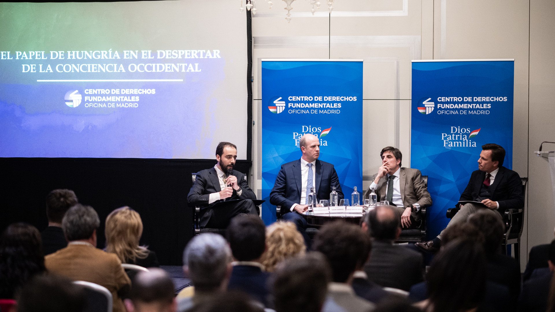 Az esemény egy panelbeszélgetéssel folytatódott, amelyben Jorge Martín Frías, a Disenso Alapítvány igazgatója, Fernando Nistal González, a CEU-CEFAS ügyvezető igazgatója és Farkas Vajk, az Alapjogokért Központ madridi irodavezetője beszélgetett Jorge González-Gallarza vendégkutatónk moderálásával. Farkas Vajk szerint célunk az, „ha Magyarországon valaki az ibéramerikai világ felé tekint, akkor először az Alapjogokért Központ jusson eszébe, és aki az ibéramerikai világban Magyarország felé tekint, annak is.” Részvételével támogatta az eseményt Andrés Pastrana, Kolumbia korábbi elnöke, a Kereszténydemokrata Internacionálé vezetője is.
