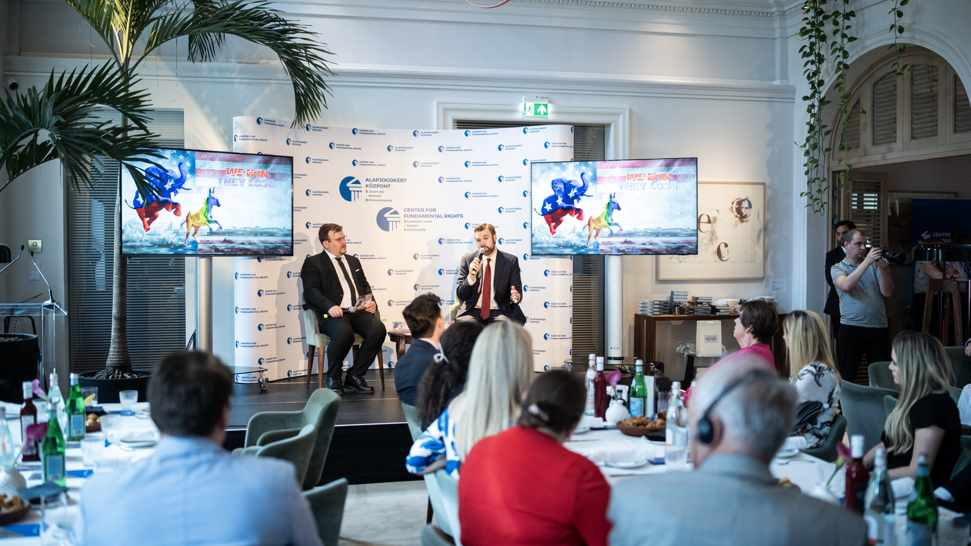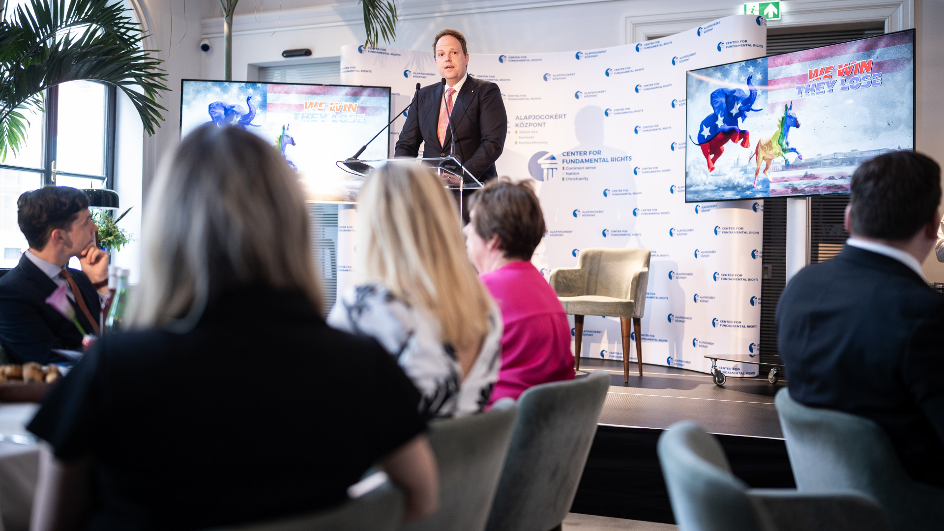 "Soha nem voltunk még ilyen közel egy globális méretű háborúhoz, mint amennyire közel kerültünk mi most. És ennek nagyon sok oka van. Az egyik oka az, hogy a nyugati világ progresszív vezetői még soha nem voltak ilyen gyengék, mint amilyenek most" - nyitotta meg a rendezvényt Törcsi Péter, az Alapjogokért Központ operatív igazgatója. Köszöntő beszédében kiemelte, hogy a liberális elit nem találja a konfliktusok megoldására a választ, nem tudnak erőt mutatni az ellenséggel szemben. "Olyan erős politikusokra van szükség, mint amilyen az Egyesült Államokban Donald Trump volt, akinek az elnöksége alatt nem volt háború, sőt, békefolyamatok indultak el" - tette hozzá.
